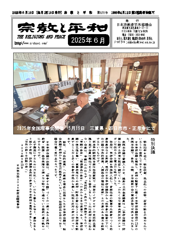 ■日本宗教者平和協議会2025年全国理事会 特別決議
