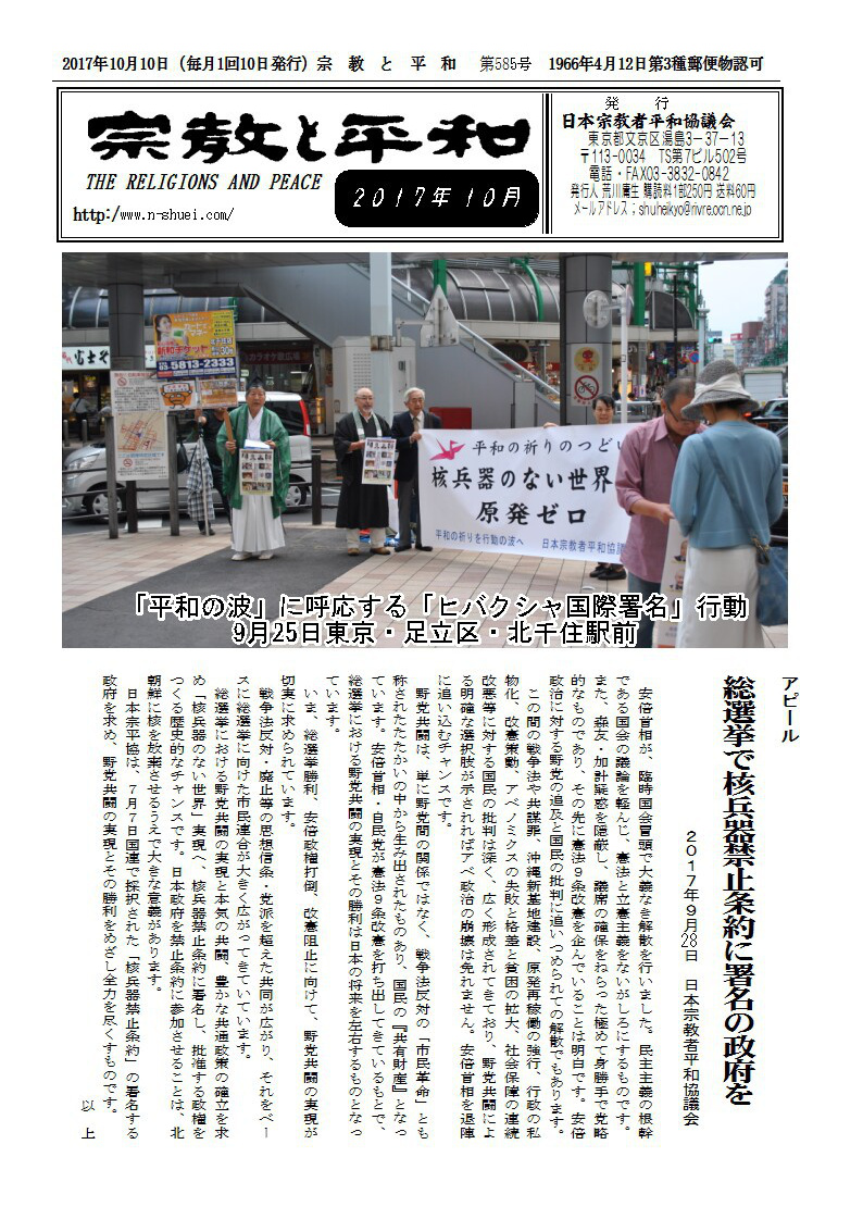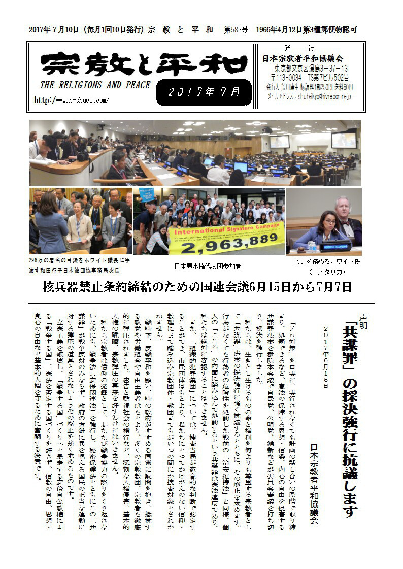 ●被爆70年 原水爆禁止2015年世界大会に参加して 日本宗教者平和協議会事務局長・真宗大谷派僧侶 森 修覚