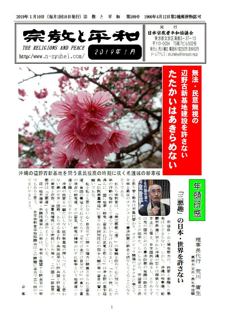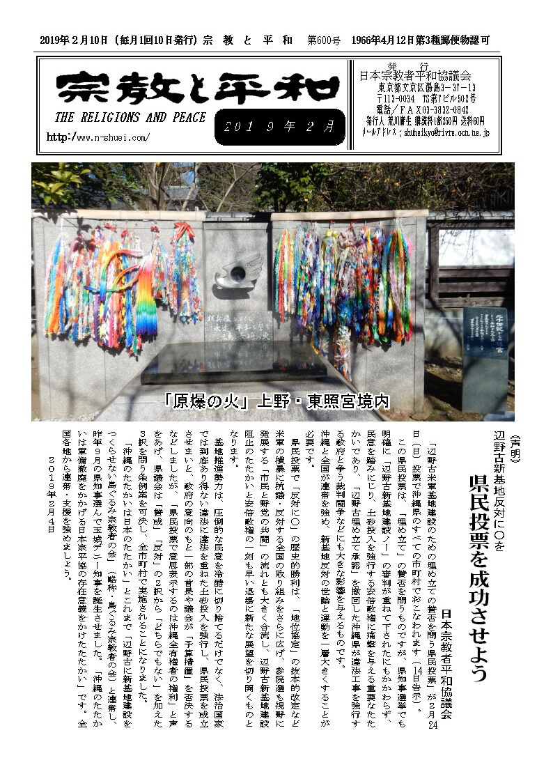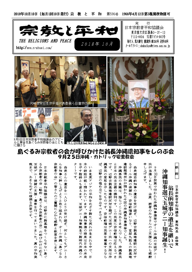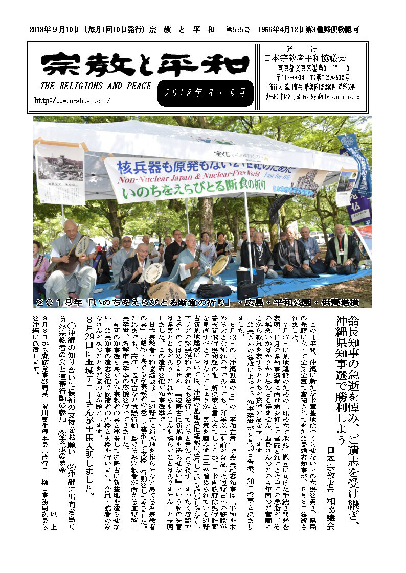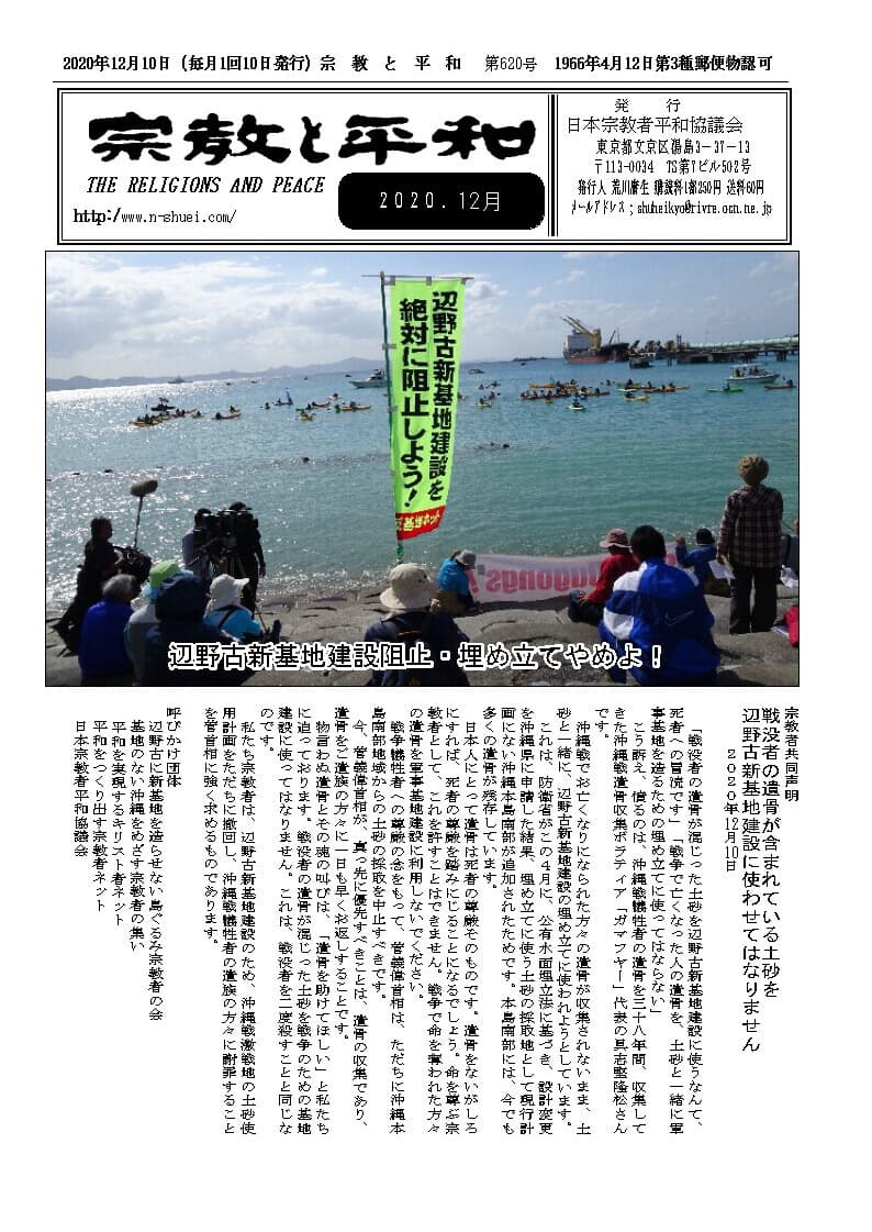 日本宗平協 辺野古基金に協力