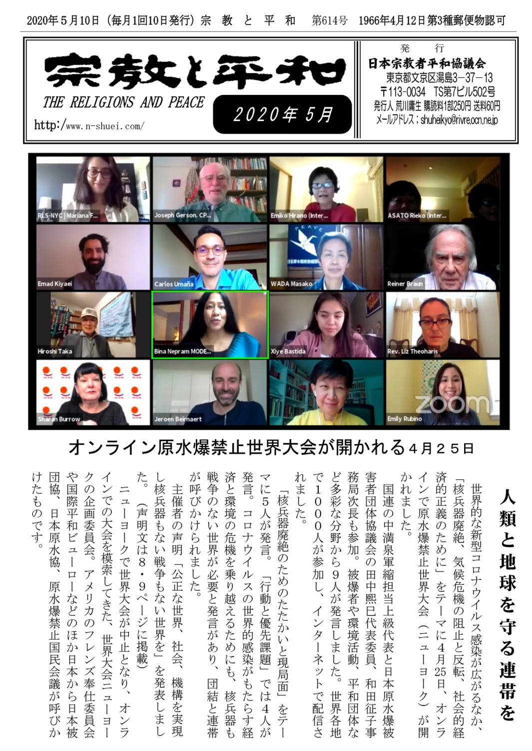 ■「天理教平和の会結成20周年記念のつどい」報告 天理教平和の会 田辺 実