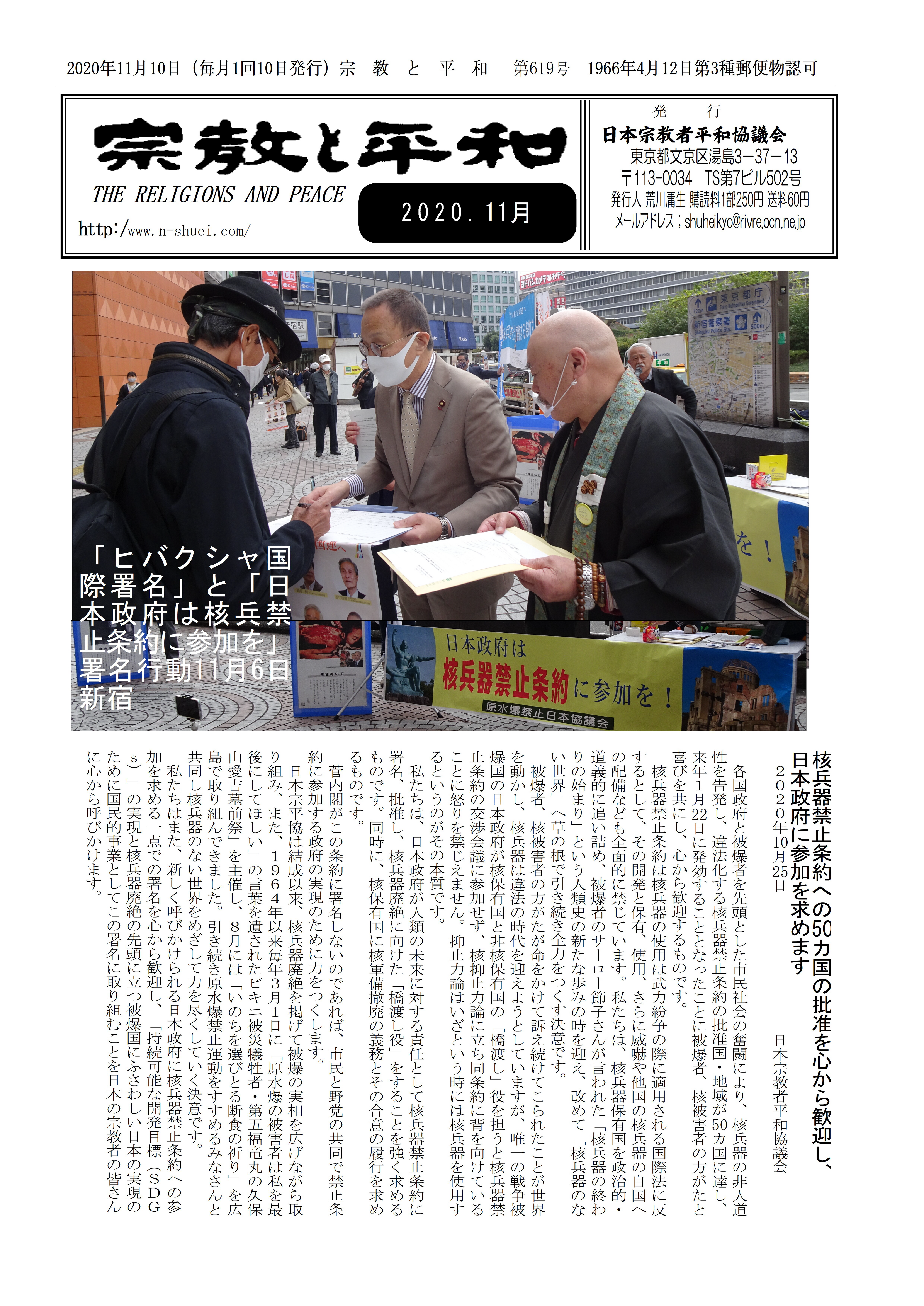 ■「日本政府に核兵器禁止条約の署名・批准を求める署名共同提出のつどい」に参加して 出口 玲子(日本キリスト教団信徒)に