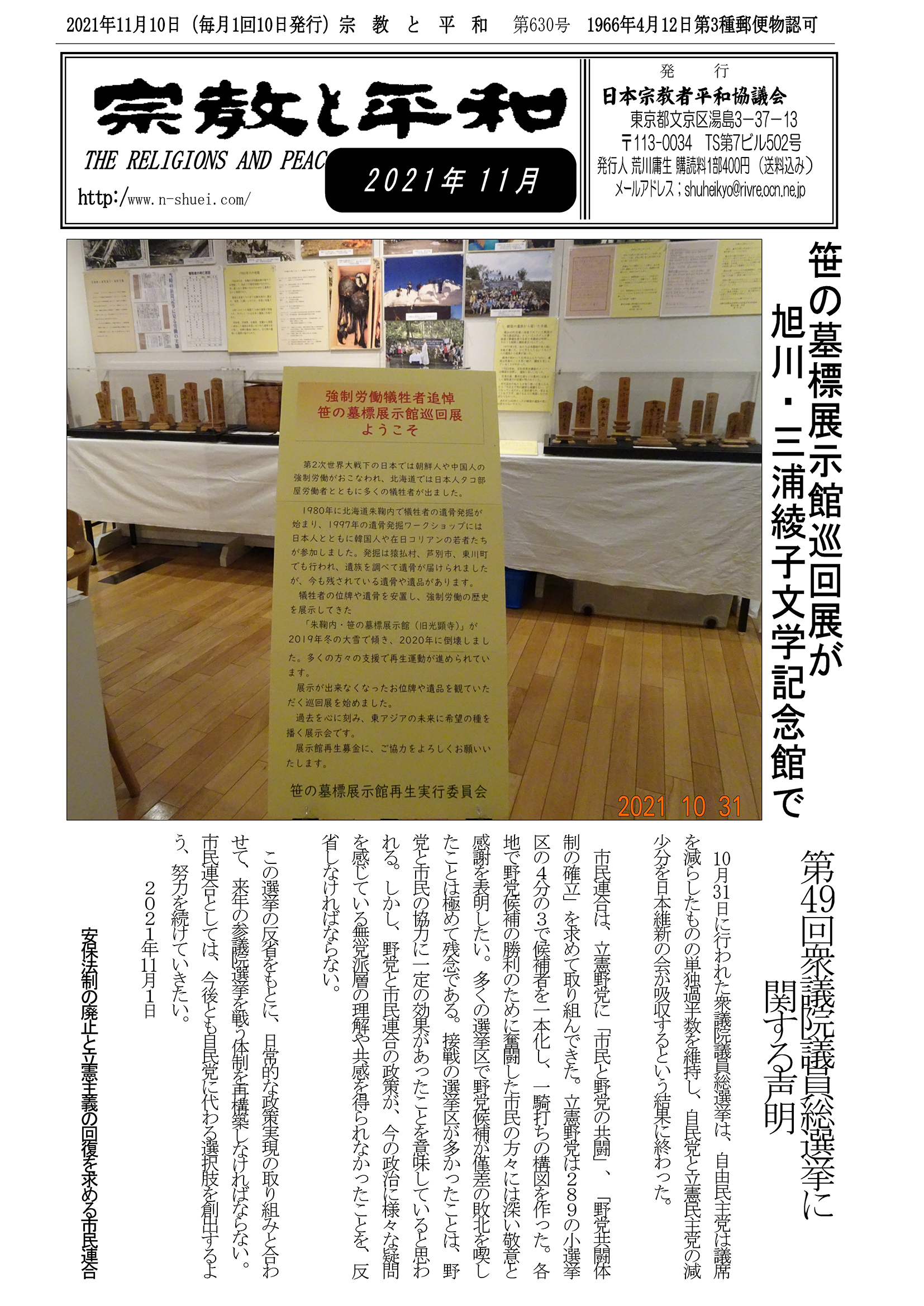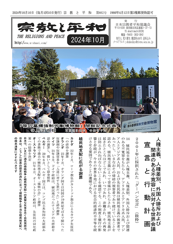■東アジアの平和と和解の拠点「笹の墓標強制労働博物館(下)」 広島宗平協 吉川 徹忍