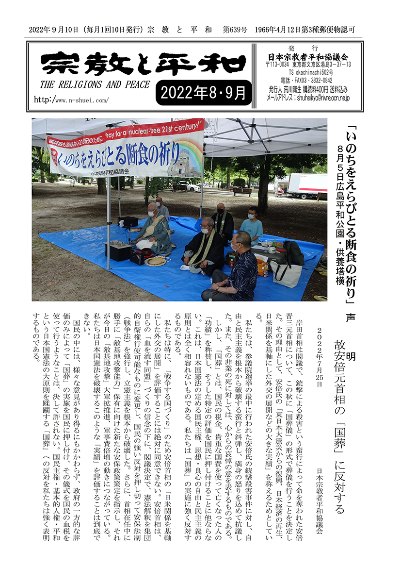 ■ヒロシマデー集会に参加して 代表理事・日蓮宗 小野 文珖