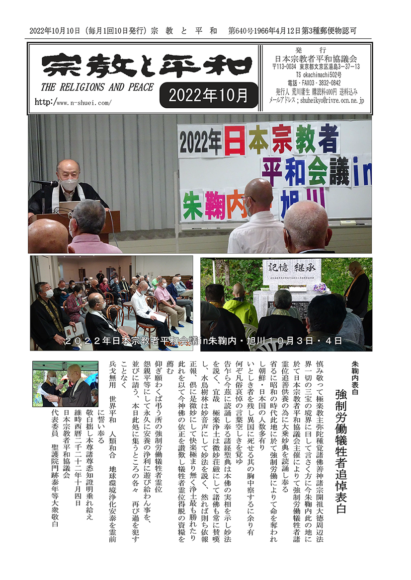■北海道宗教者平和協議会結成60周年記念集会 北海道宗教者平和協議会 事務局長 小林良裕