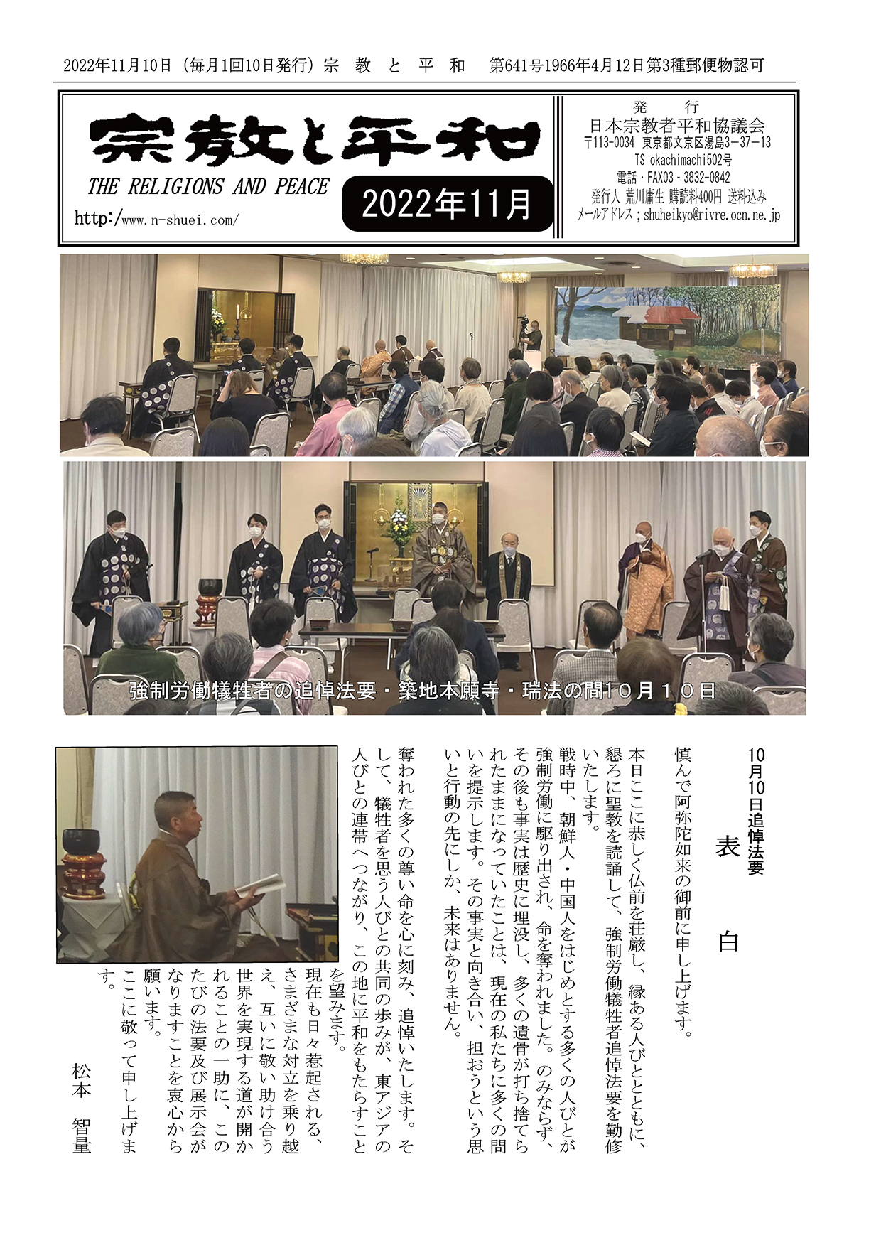 「敬朋」慰霊祭、「非核・非戦法要」に参列 林 正道