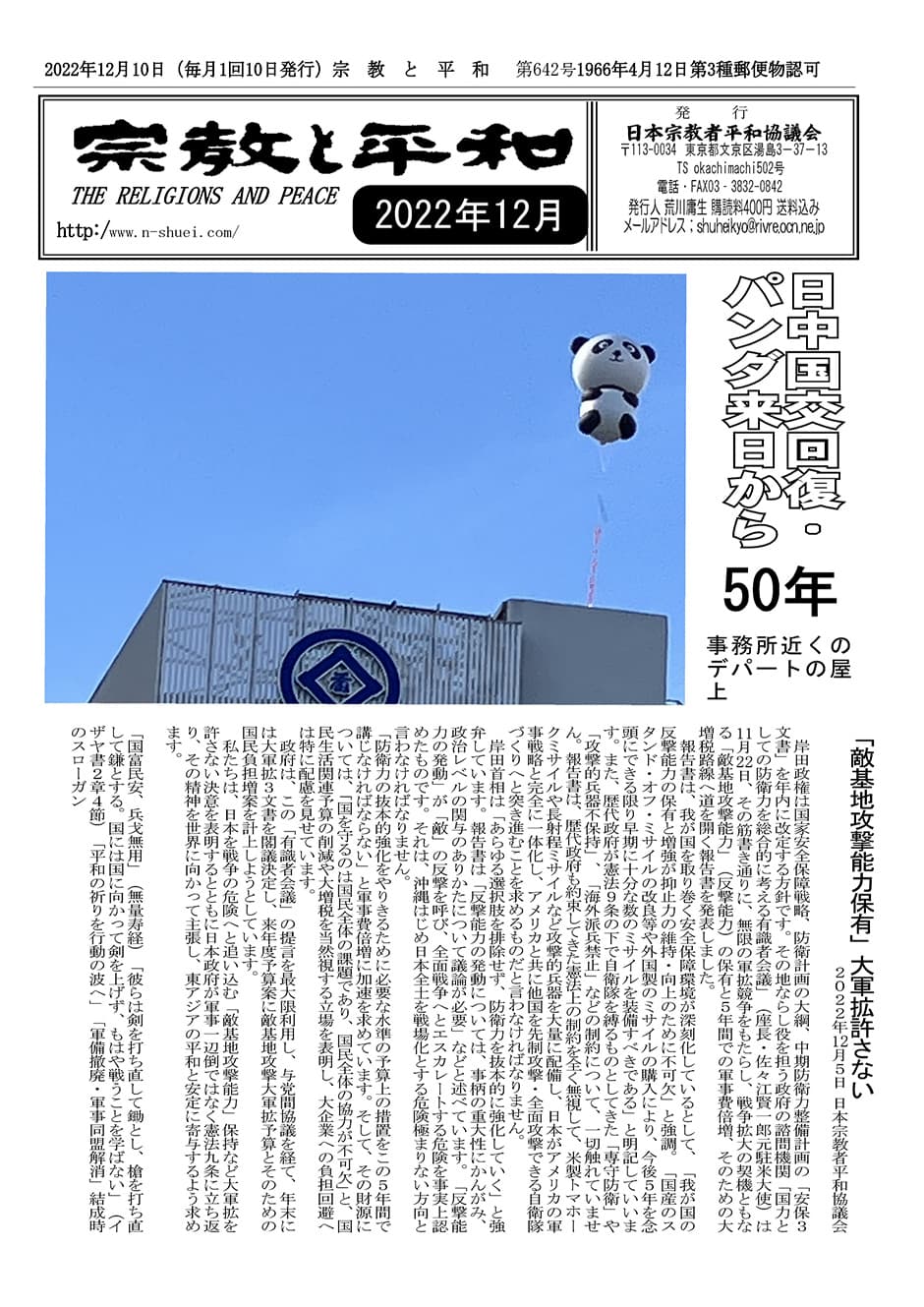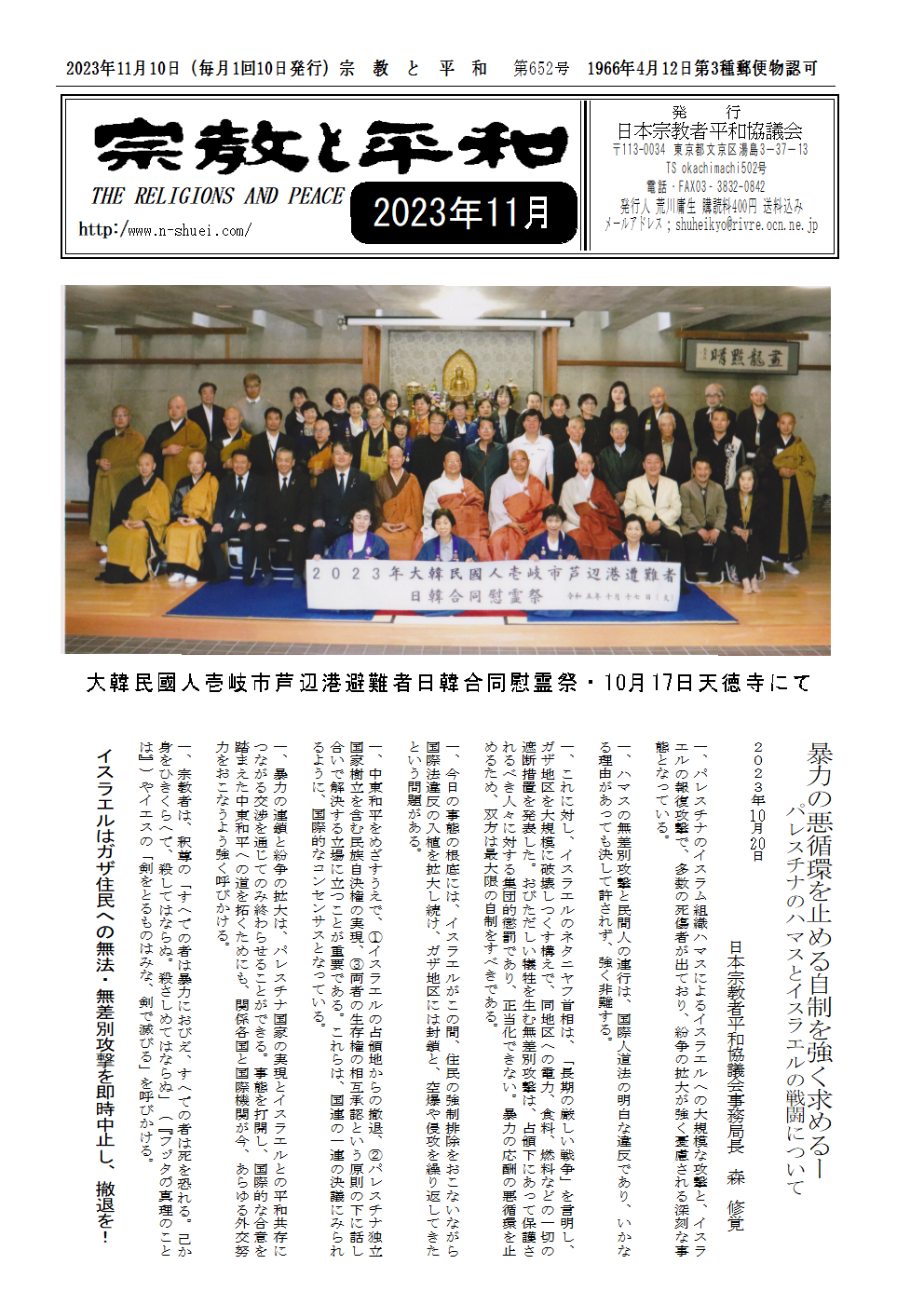 ■高市総理大臣への要請文 日本宗教者平和協議会