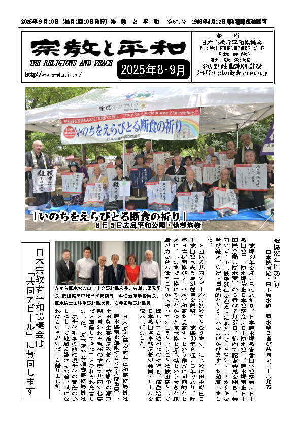 ■日本宗教者平和協議会2025年全国理事会 特別決議